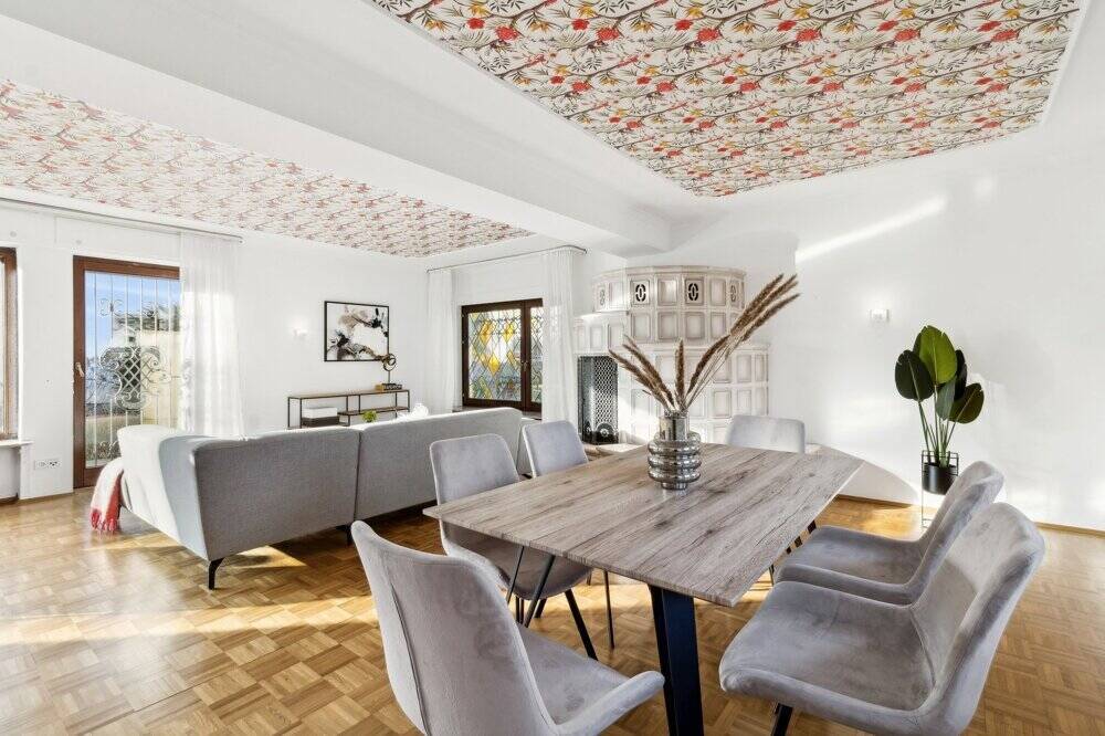 Im Erdgeschoss erwartet Sie Ihre künftige Familienwohnung mit ca. 170 m² Wohnfläche, verteilt auf derzeit 3 sehr große Zimmer ( 4-5 wären möglich). Hochwertige Böden aus Parkett, Marmor und Feinstein sowie ein herrlicher Kachelofen, der dem Wohnbereich besonderen Charme verleiht, große Fenster, Tageslicht in allen Bädern und eine angenehme Deckenhöhe von 2,50 m sorgen für ein lichtes, freundliches Wohngefühl...