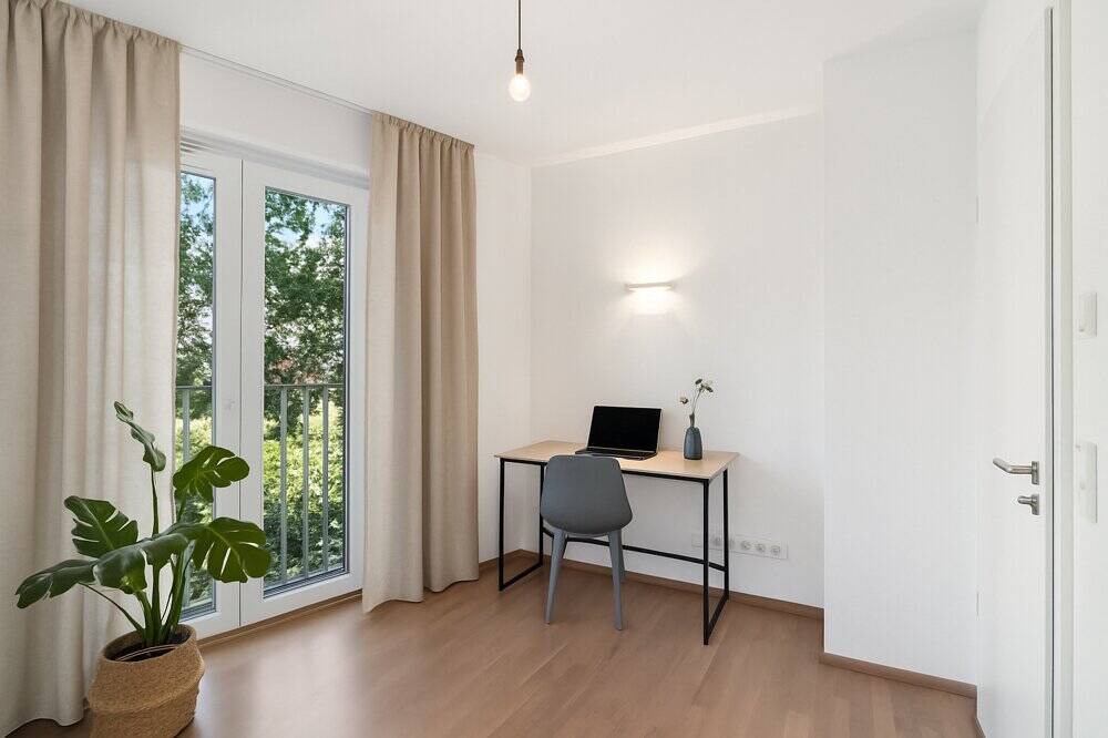 Große Fenster sorgen für eine freundliche Atmosphäre, während der Parkettboden für ein angenehmes Wohnklima sorgt. Die komfortable Fußbodenheizung garantiert eine effiziente Wärmeverteilung und sorgt für Wohlfühltemperaturen zu jeder Jahreszeit.