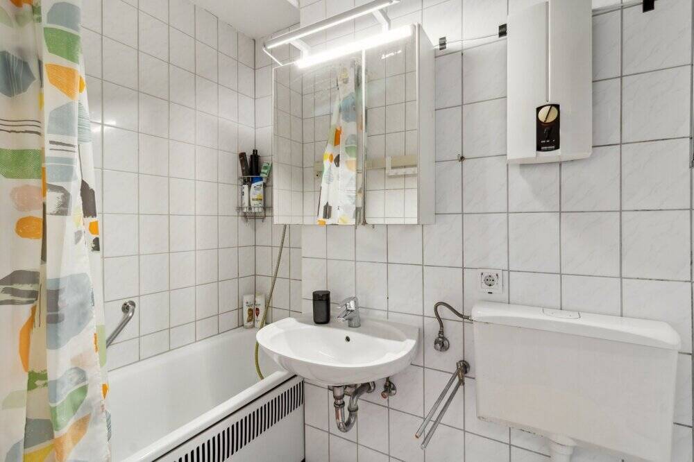 + duş, lavabo ve WC içeren şık banyo